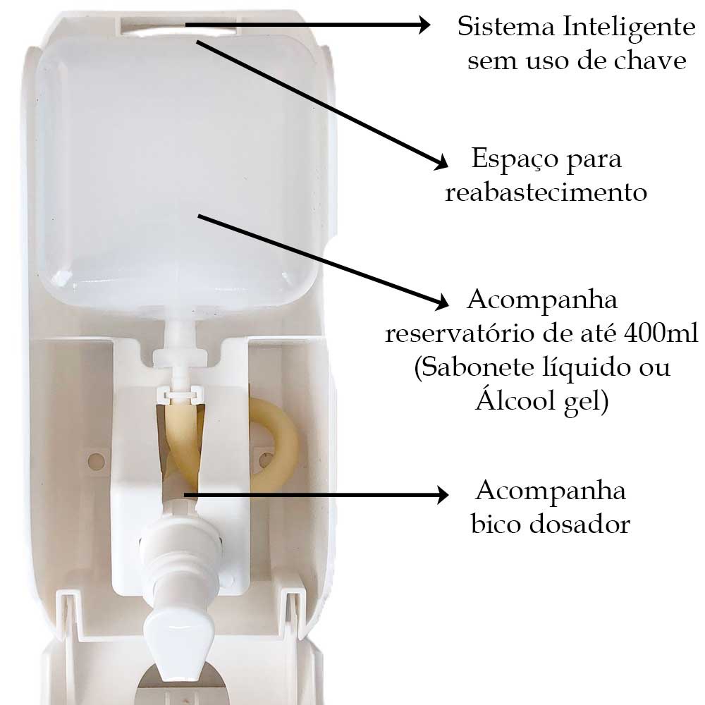 Kit 1 Dispenser Porta Sabonete líquido álcool gel + 1 Toalheiro porta papel toalha compacto Urban Branco Banheiro Bar Lavabo Consultório Prédio