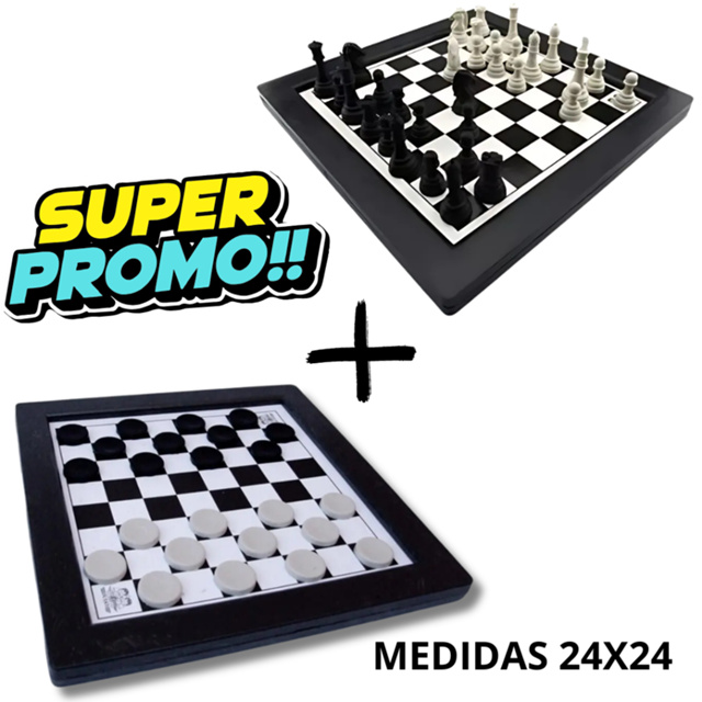 | KIT 1 Jogo de XADREZ Tabuleiro 24 cm + 1 Jogo de DAMA Damas Tabule... este produto | R$ 27,50 | 8% | 4.9/5 | 31 |