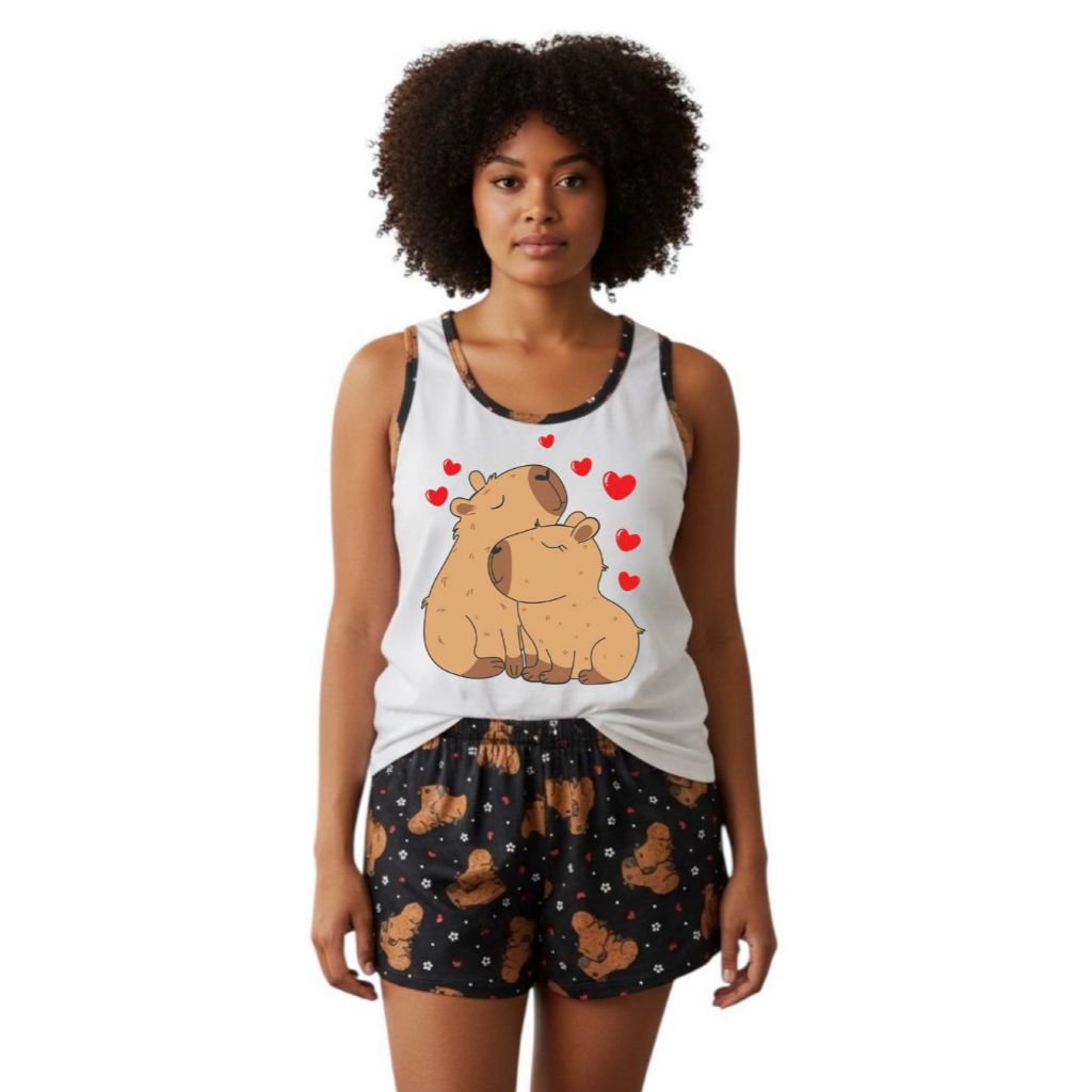 Kit 1 Mãe e 2 Filhas Baby doll estampado regata tal mãe tal filha capivara verão malha short doll camiseta personagens