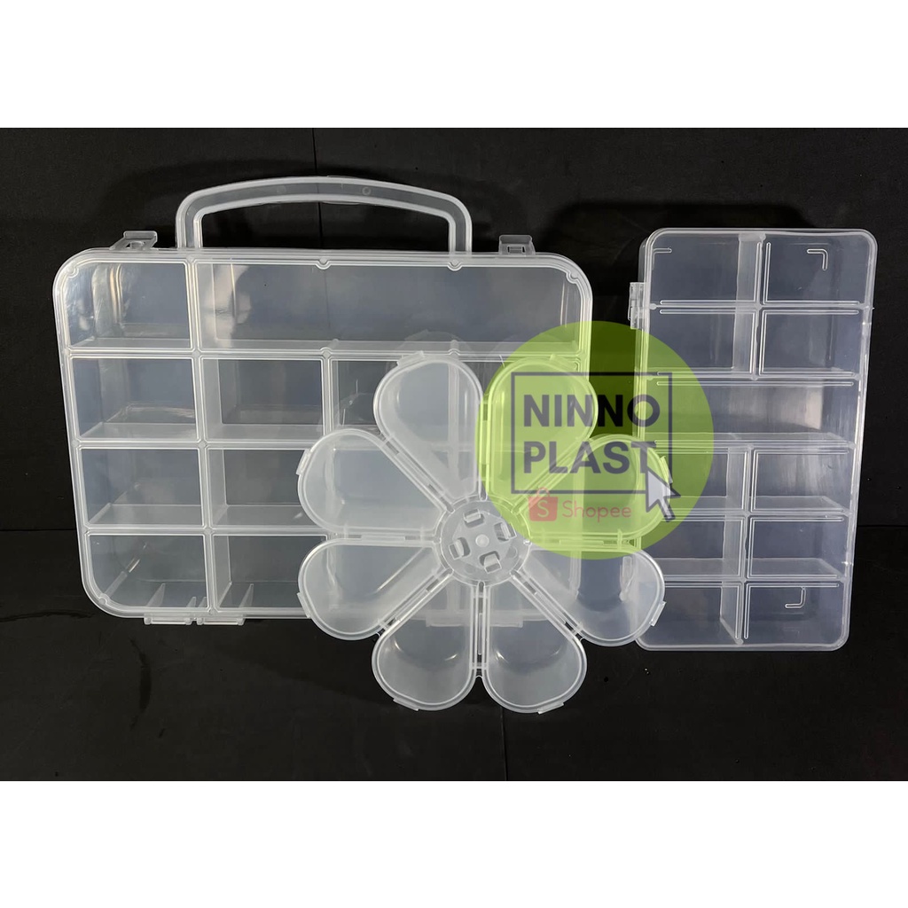 O produto Kit 1 Maleta 14 Divisões + 1 Caixa 11 Divisões + 1 Margarida 8 Divisões (transparentes) é um item na subcategoria Caixas, Bolsas e Cestas de Armazenamento (de Casa e Construção), disponível na Shopee Brasil por R$ 30,50. Avaliado em 4.9/5 pelos compradores e 122 unidades vendidas, este produto se destaca pelo excelente custo-benefício.