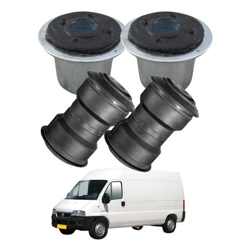 Este anúncio contém: 02 (duas) buchas traseiras parte dianteira (usam duas de cada lado) 02 (duas) buchas traseiras parte traseira (usam duas de cada lado). Aplicável nos seguintes veículos: Ducato 1.9, 2.5, 2.8 Após 1994; Jumper 2.3, 2.5 Após 1994; Boxer 2.3, 2.5 Após 1994. Quem somos? Loja de Auto Peças e Acessórios para carros nacionais e importados, há 35 anos atendendo o mercado de reposição. Temos em estoque uma enorme variedade de produtos para motor, câmbio, suspensão, freios e diversos acessórios para seu carro, trabalhamos com marcas originais e paralelas, todas as peças com preços que cabem no seu bolso. Dúvidas frequentes: O Produto é novo? Sim, todos os nossos produtos são novos diretamente de fábrica. Produtos de qualidade ? Todos os nossos produtos seguem um rigoroso processo de qualidade fazendo com que se tornem itens de primeira linha no mercado de reposição. O produto é igual ao da foto? Sim. Todas as fotos são fiéis ao que você receberá, são feitas para facilitar a sua compra. Tem garantia? Sim, temos garantia para defeito de fábrica. Todos os nossos produtos têm 3 meses de garantia. Tem a pronta entrega? Temos sim, todos os nossos envios demoram no máximo 24 horas para serem retirados pela transportadora do Mercado Livre. Enviam pelos correios? Todos os produtos são retirados exclusivamente pelo transporte do Mercado Livre, não enviamos pelos correios. Envia ainda hoje? Pedidos liberados pelo Mercado Livre até as 12:00 são retirados no mesmo dia, após esse horário serão enviados no dia seguinte, a coleta do Mercado Livre passa de segunda a sábado em nossa unidade. Em quanto tempo recebo minha compra? É muito simples, ao clicar em comprar, basta colocar seu CEP no calculador de frete do anúncio que irá aparecer o valor do frete e a data de entrega. Emite nota fiscal ? Sim, todos os nossos produtos saem com nota fiscal. Importante: No ato da compra, caso necessário, enviaremos uma mensagem confirmando algumas informações, para evitar enganos no envio e transtornos posteriores, caso não haja a confirmação, enviaremos conforme o anúncio que a compra foi feita. Tem alguma dúvida sobre o produto ou sobre a compra? Deixe sua pergunta abaixo, que responderemos prontamente.