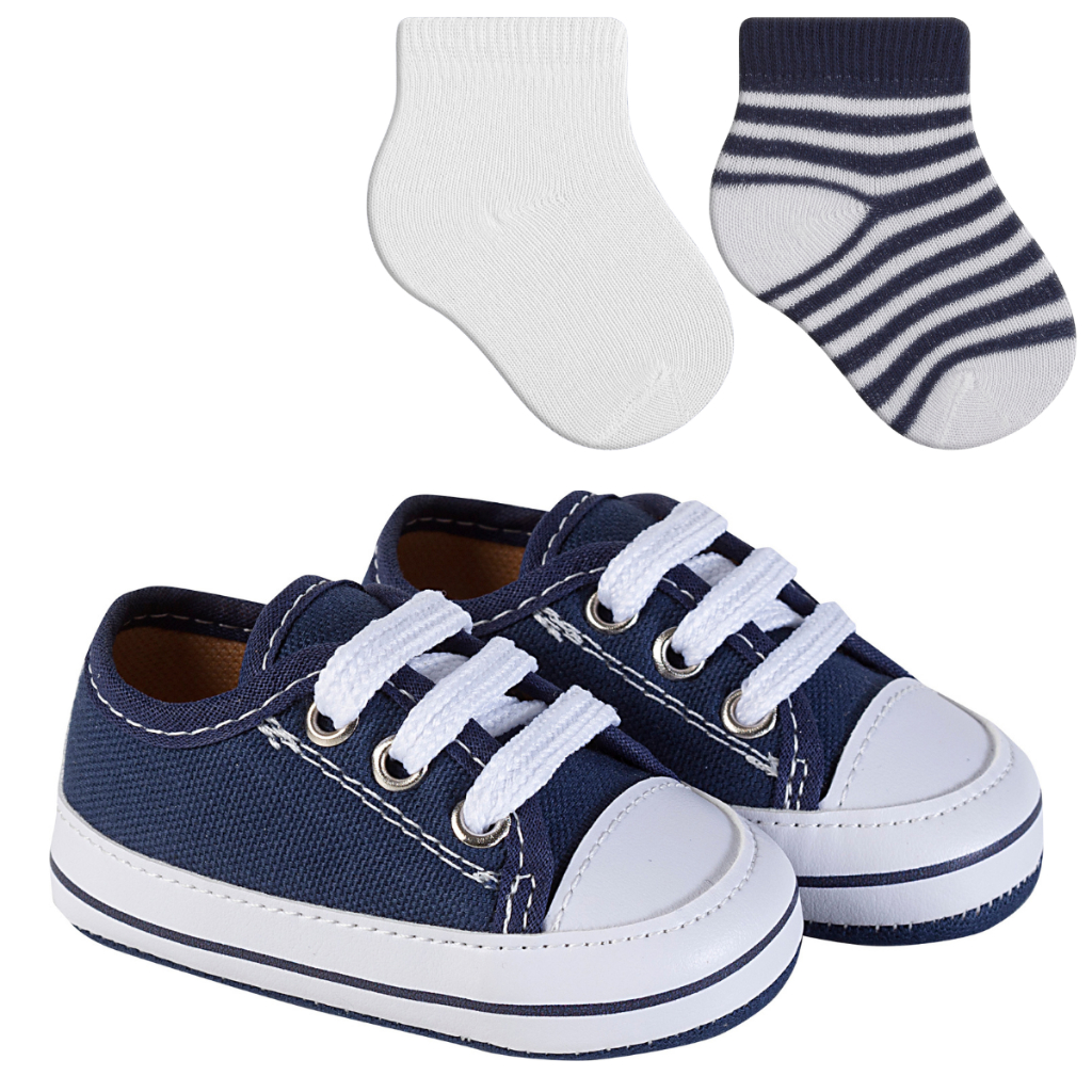 Kit 1 Tênis Sapatinho Infantil Bebê e 2 Pares de Meias Recém Nascido Presente Menino Menina Unissex