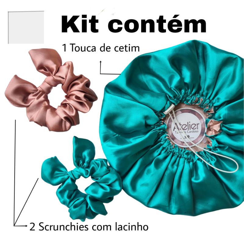 Kit 1 Touca De Cetim M Dupla Camada Regulável + 2 Scrunchies