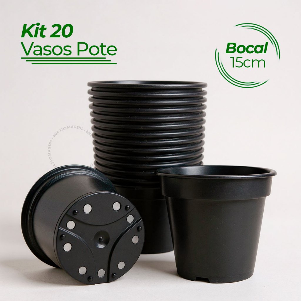 | Kit 10 20 Vaso Pote Redondo Plástico Bocal 15cm Preto Muda Plantas ... este produto | R$ 18,88 | 25% | 5.0/5 | 209 |