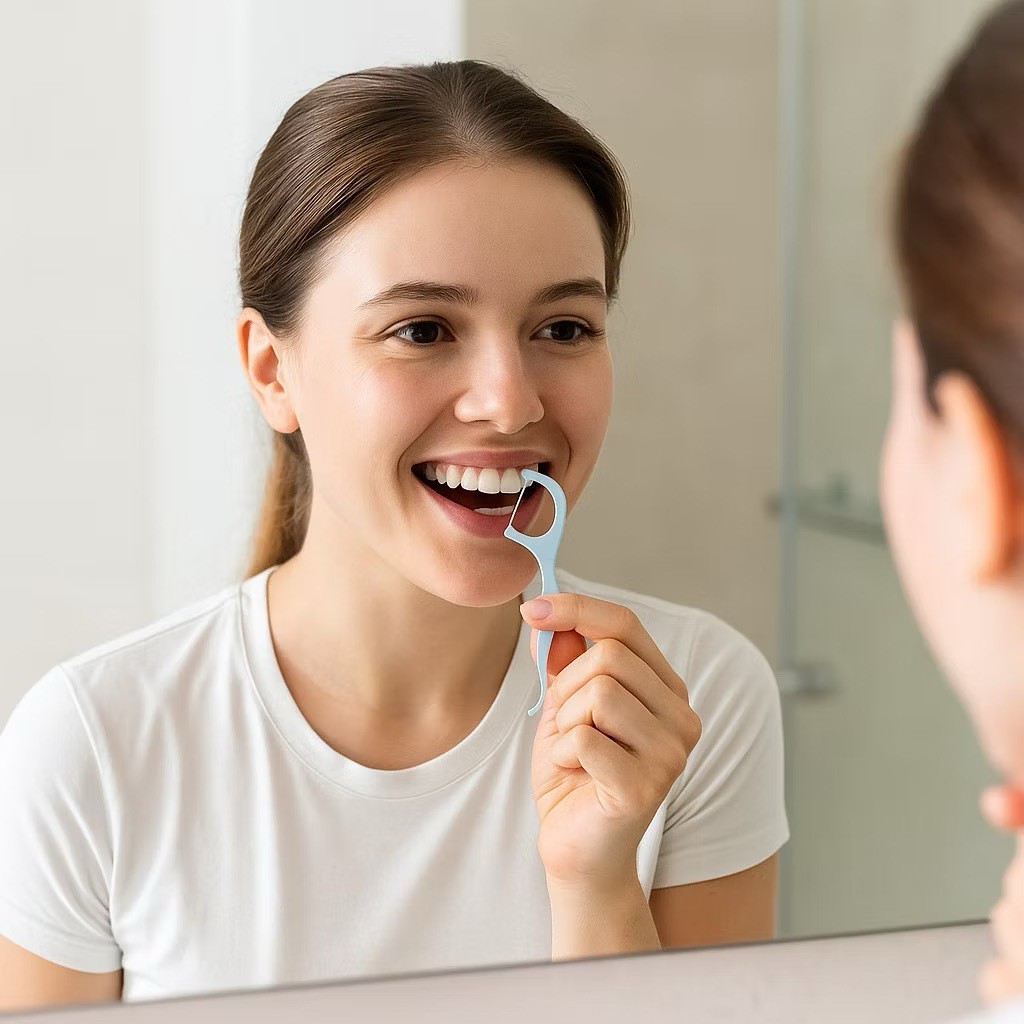 Kit 10/50/100/200/300 Fio Dental Infantil 2 em 1 Arco e Palito Ultra Fino Colorido – Limpeza Bucal Divertida Eficaz