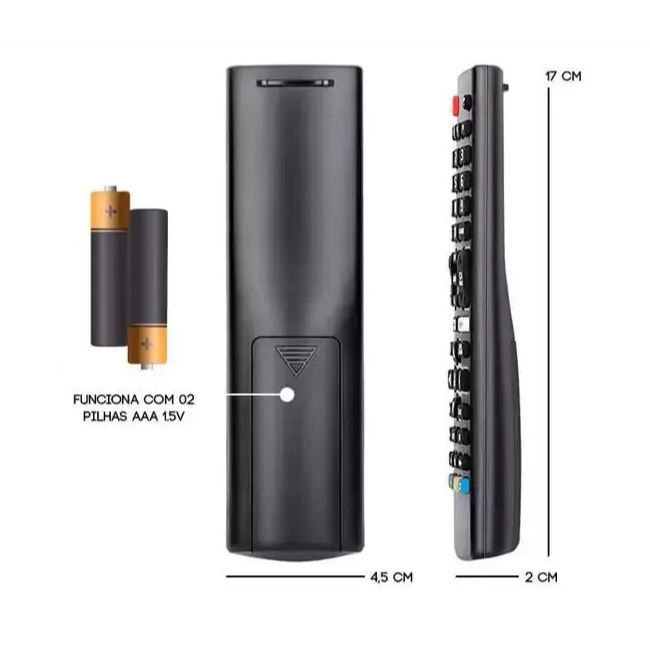 Controle Remoto Universal Lelong Le-7384 Controle remoto infravermelho universal. É compatível com a maioria das novas e antigas TVs Smart da LG e Samsung, teclas macias, plástico resistente e um Led transmissor com excelente tempo de resposta, oferecendo a mesma qualidade e utilidade de ter um controle original em mãos. Controle simples e compacto, sem necessidade de programação ou configuração. Longa distância de transmissão, desempenho estável. Substitui seu antigo cobrindo todas as funções do controle remoto original. INFORMAÇÕES TÉCNICAS: Marca: Lelong / Modelo: LE-7384 Controle Compatível (não é o original da marca) Material: Plástico e componentes eletrônicos Alimentação: 2 Pilhas AAA (não inclusas) Tamanho aprox.: 17 cm x 5 cm x 2 cm CONTEÚDO DA EMBALAGEM: 1 Controle Remoto Lelong LE-7384