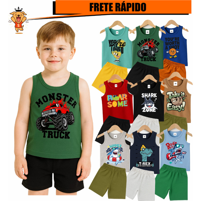 Kit 10, 6 ou 2 Peças Conjuntos Básico Roupa Infantil Masculino verão Regata + Shorts