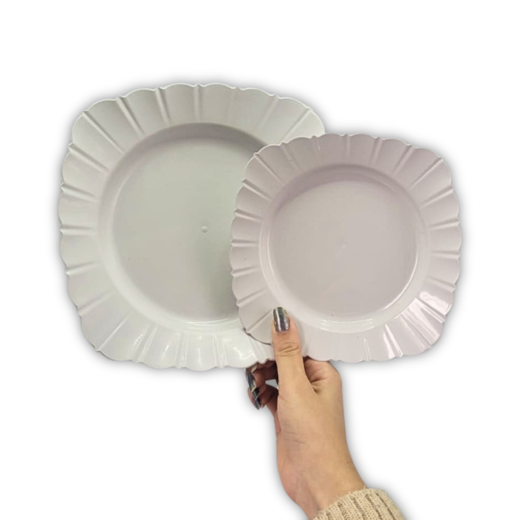 Kit 10 a 100 de 2 Tamanhos de Pratos Para Refeição e Para Sobremesa de Plastico Versateis Resistentes