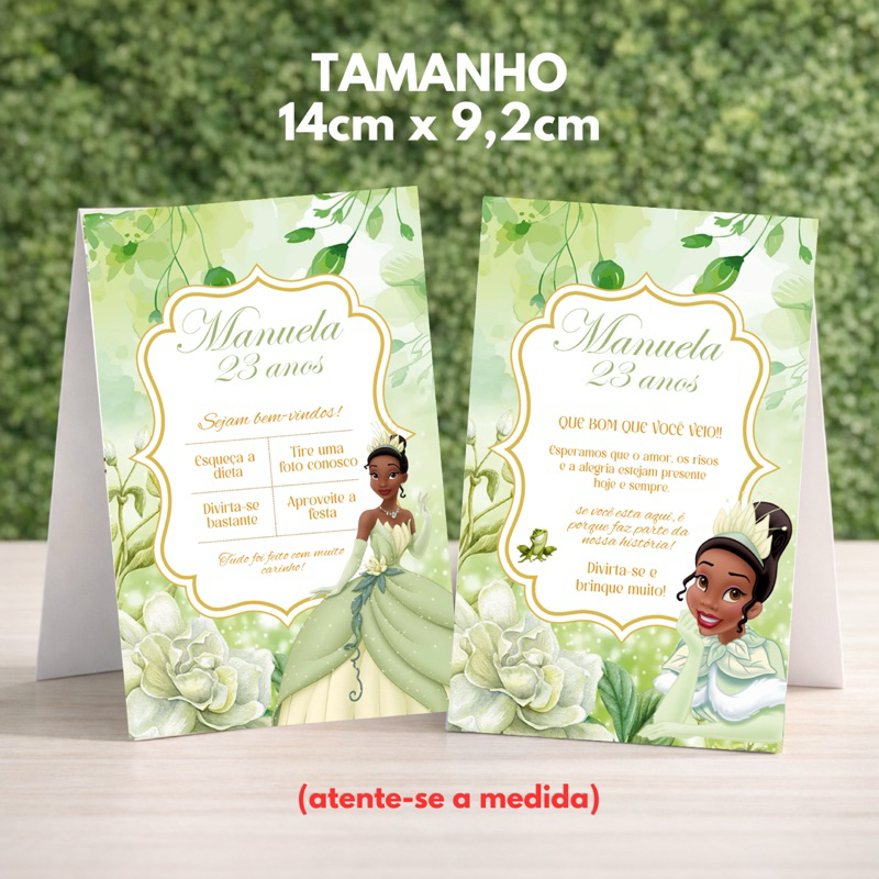 KIT 10 a 30 PLAQUINHAS DE AGRADECIMENTO – TEMA PRINCESA TIANA Deixe sua festa ainda mais encantadora com nosso kit de plaquinhas de agradecimento para centro de mesa! Com ilustrações fofas e personalizadas no tema, elas são perfeitas para complementar a decoração e demonstrar carinho aos seus convidados. > Especificações da Plaquinha: - Tamanho: 14 cm x 9,2 cm - Papel Offset 180g (fosco), impresso em alta qualidade - Impressão frente e verso > Produção: - Começa a contar após a confirmação do pagamento - Produto artesanal, feito com muito cuidado e carinho > Entrega: - Garantimos o envio no prazo informado - Atrasos após a postagem são de responsabilidade dos Correios Perfeita para emocionar e demonstrar carinho com um presente simples e cheio de significado!