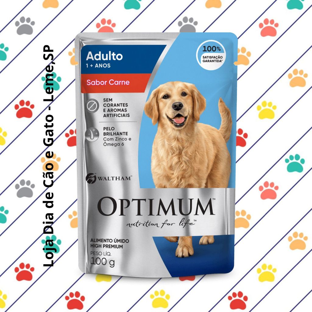 | Kit 10 a 40 Sachês Optimum 100g para Cachorros - Ração Comida Úmida este produto | R$ 40,00 | — | 5.0/5 | 5 |