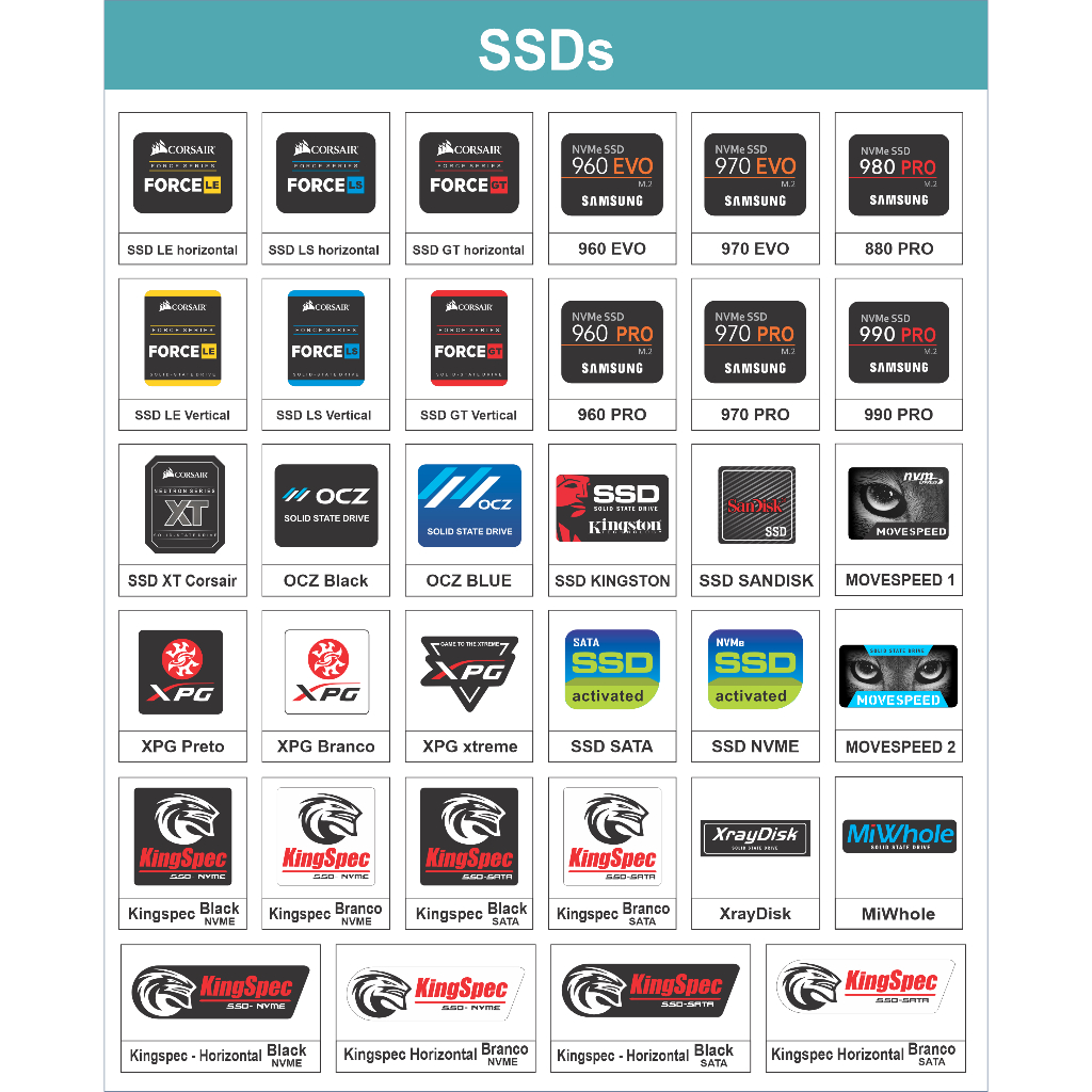 Kit 10 adesivos para gabinetes (a escolha) - Amd, Intel, Nvidia, Ryzen, SSD