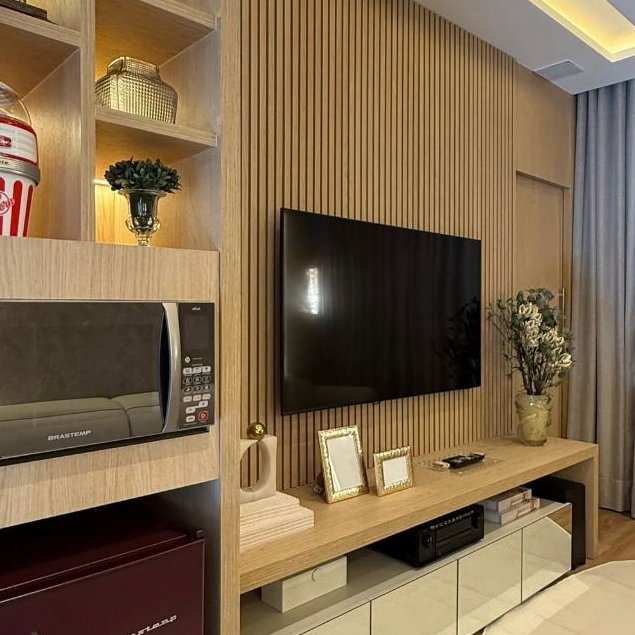 Nosso Kit Revestimentos Ripados MDF (45×10 cm) é ideal para dar um toque moderno e elegante a paredes de salas, quartos, escritórios, lojas e muito mais. 📍 OBS: QUANTIDADE MÁXIMA PERMITIDA POR PEDIDO DE RIPADO 250 PLACAS. 🔹 O que está incluso: * placas ripadas em MDF alta qualidade * Medida: 45 cm x 10 cm cada * Espessura: 2,5 mm * Fita dupla face inclusa para instalação rápida e sem sujeira  🔹 Características principais: ✔ Fácil de instalar (fita dupla face ou cola) ✔ Pode ser aplicado sobre parede lisa e limpa ✔ Dê profundidade, textura e estilo às suas paredes ✔ Uso residencial ou comercial ✔ Ideal para ambientes como sala de estar, quarto, home office, corredores 🔹 Instruções de aplicação: 1. Limpe a superfície antes da aplicação 2. Meça e marque o alinhamento desejado 3. Aplique a fita dupla face nas placas 4. Pressione firmemente na parede 5. Repita até completar o visual desejado 🔹 Dicas de estilo: ✨ Combine com iluminação LED para efeito premium ✨ Use em um painel de TV, parede principal ou hall de entrada ✨ Misture com quadros ou espelhos para um décor sofisticado 📍 Frete grátis acima de R$19,00 + Cupom de frete disponível! 📍 Acompanha fita dupla face para fácil instalação , destaque e cole. 📏 Cobertura por quantidade de placas: 1 placa → 0,045 m² 10 placas → 0,45 m² 20 placas → 0,90 m² 30 placas →1,35m² 40 placas → 1,80 m² 50 placas → 2,25 m² 60 placas → 2,70 m² 70 placas → 3,15 m² 80 placas → 3,60 m² 90 placas → 4,05 m² 100 placas →4 ,50 m² 150 placas→ 6,75 m² 200 placas → 9,00 m²