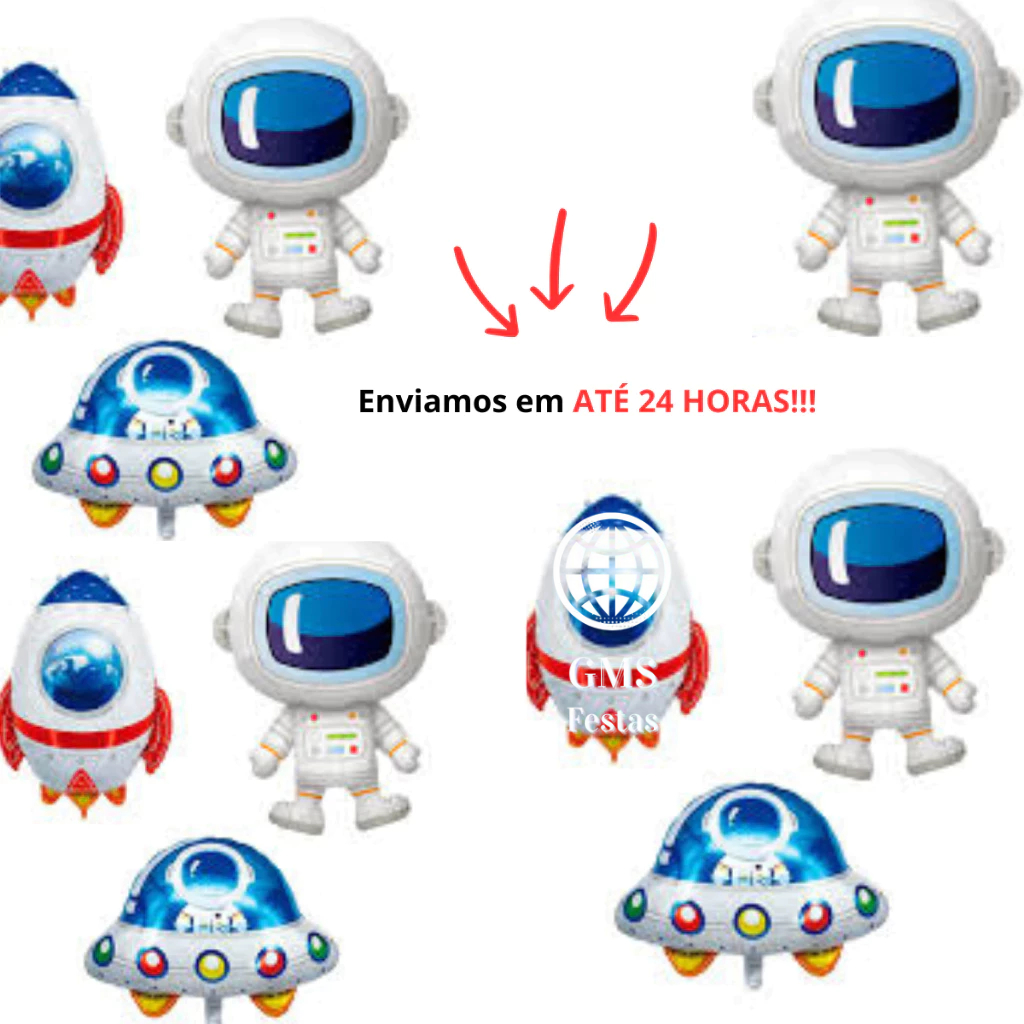 | Kit 10 Balões Metalizados Astronauta Foguete e Nave Espacial Festa ... este produto | R$ 22,99 | — | 4.9/5 | 6 |