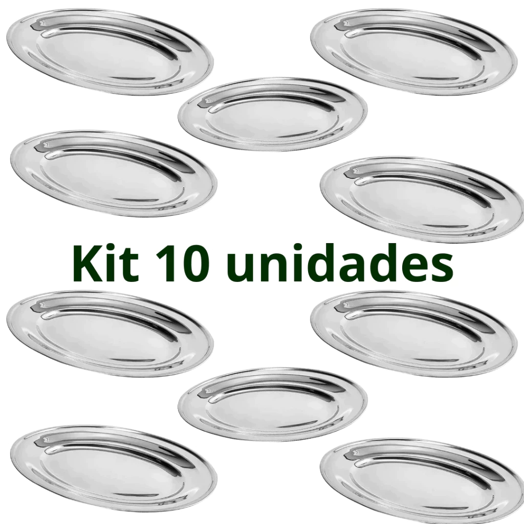 Kit 10 Bandejas Travessas Inox Oval Restaurante Porção Atacado Bom Preço