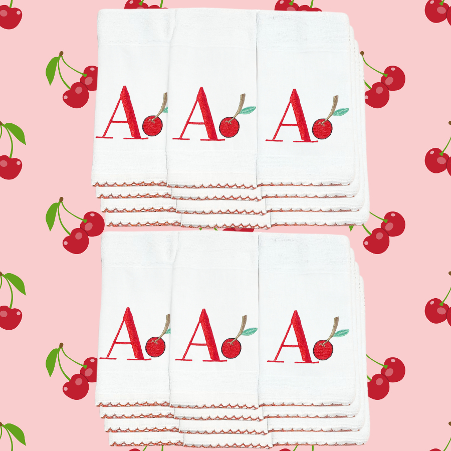 Kit 10 Boca Fralda Frutinhas Cerejinha Personalizada com Inicial do Nome Bebe 100% Algodão Bordado