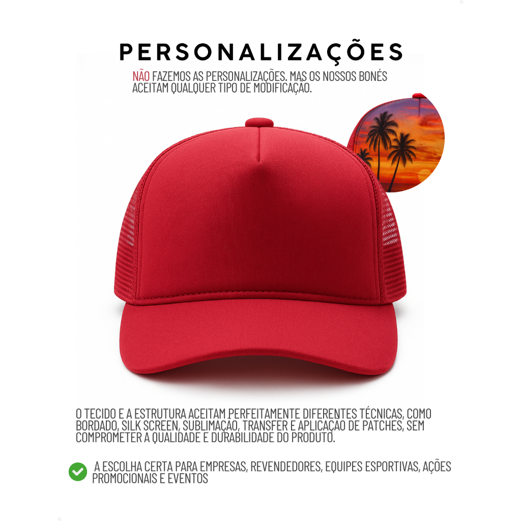 KIT 10 Bonés Vermelho Trucker sem estampa Unissex
