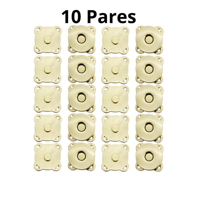 Kit 10 Botao imantado magnetico de costura 18mm Dourado para bolsas carteiras casacos e outros