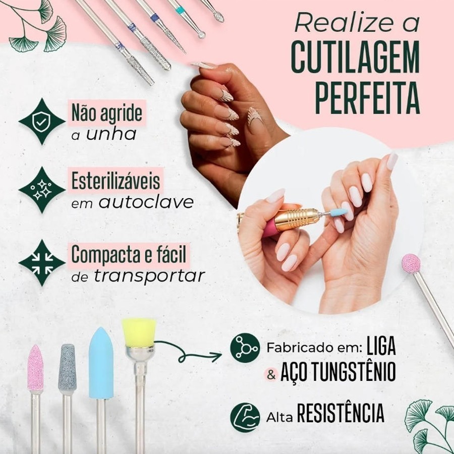 Kit 10 Brocas Diamatadas Cutilagem Russa Unhas Gel Acrigel