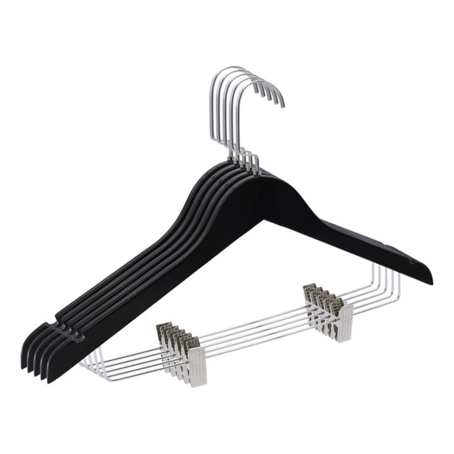 Kit 10 Cabide De Madeira Preto Com Presilha Prata Adulto Saia