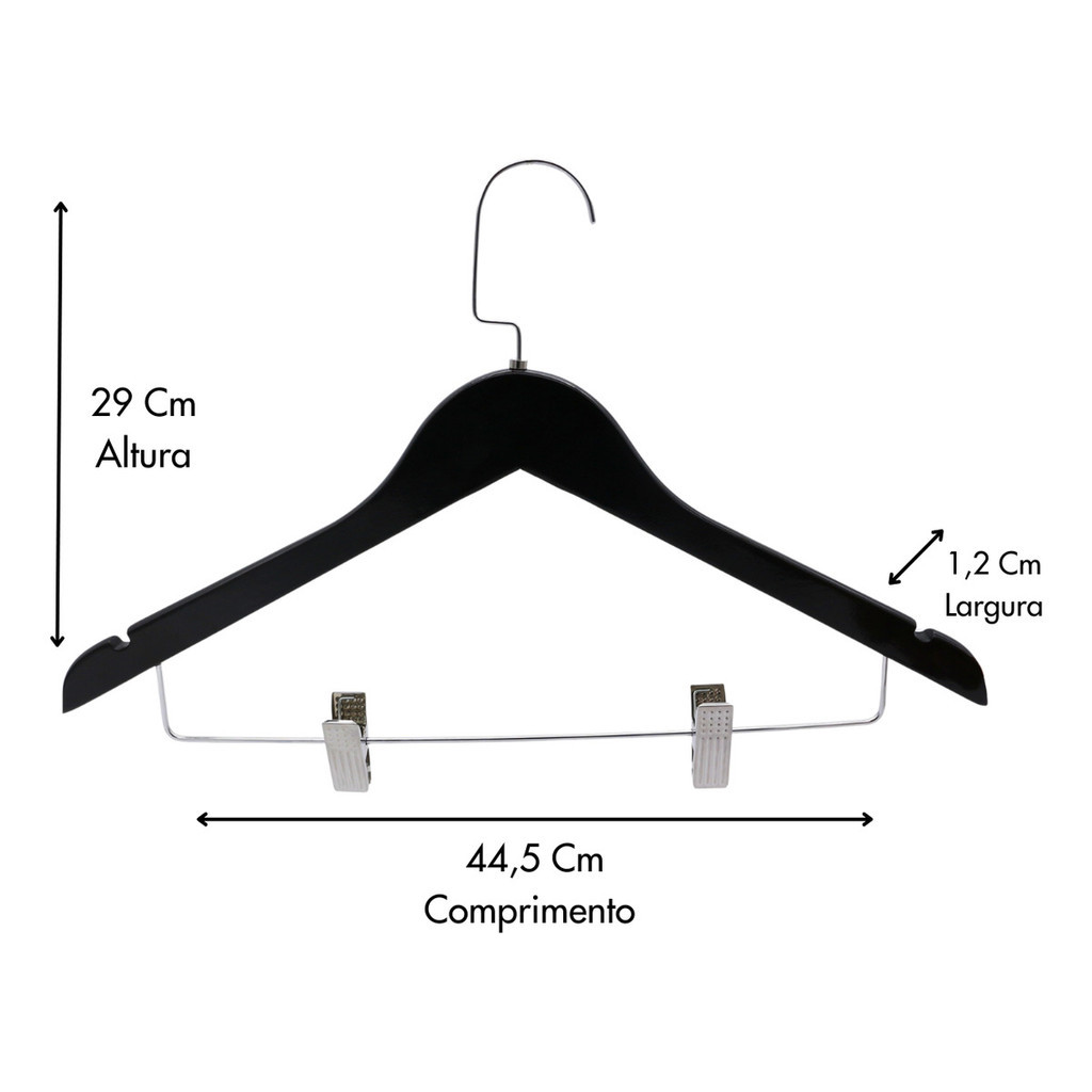 | Kit 10 Cabide De Madeira Preto Com Presilha Prata Adulto Saia este produto | R$ 184,28 | 7% | — | 5 |