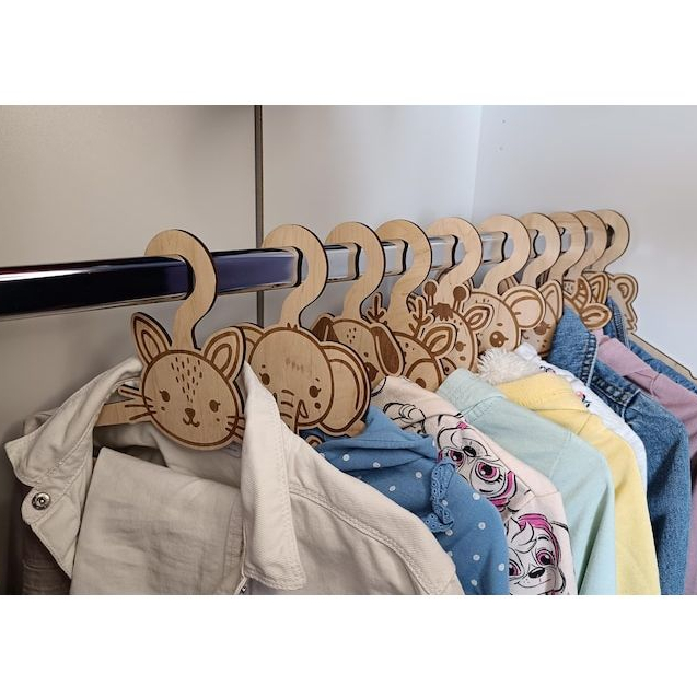 "Kit 10 Cabides MDF Infantil – Animais, Madeira, Roupas de Bebê, Decoração"