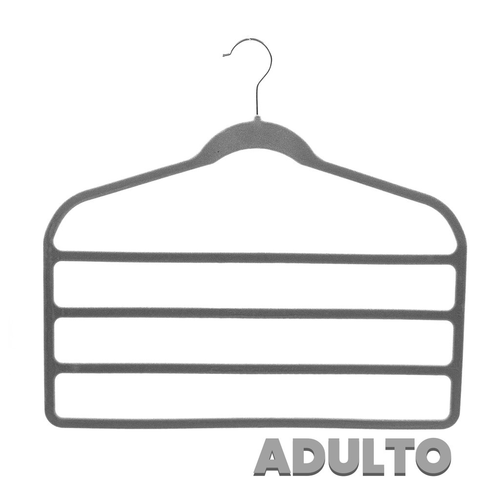 Kit 10 Cabides Veludo cinza slim ultrafino para 4 calças