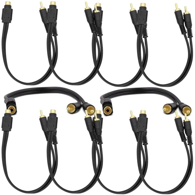 Kit 10 Cabo Rca Y Flexível 2 Macho 1 Fêmea Som Automotivo