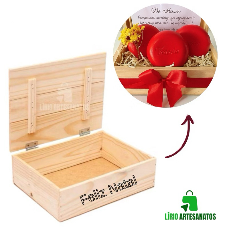 Apresentamos a linda Caixa de Madeira de Pinus – Especial Dia das Mães, da Lírio Artesanatos! Essa peça é perfeita para montar kits encantadores com chocolates, cosméticos, perfumes, sabonetes ou guloseimas. Ideal para quem trabalha com revendas criativas, a caixa une beleza, qualidade e praticidade para suas composições ficarem ainda mais especiais nessa data tão importante. Dimensões: Comprimento: 20,5 cm Altura: 7,5 cm Largura: 13 cm Detalhes: • Feita em madeira de pinus de alta qualidade • Montada com grampos e cola própria para madeira • Acabamento rústico e charmoso • Disponível em 3 cores: Natural, Queimada e Marrom • Kit com 10 unidades Transforme seus kits do Dia das Mães com essa caixa linda, resistente e cheia de personalidade! Lírio Artesanatos – onde cada detalhe importa.
