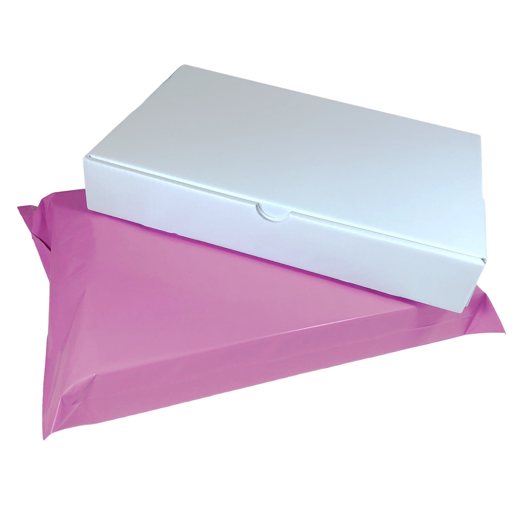 Kit 10 Caixas de Papelão Branco 24x16x4 + 10 Envelopes de Segurança Rosa Lilás 30x20