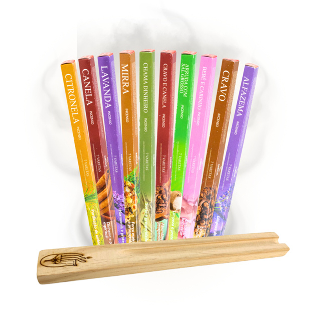 Kit 10 Caixas Incenso Indiano Mais Incensário De Madeira