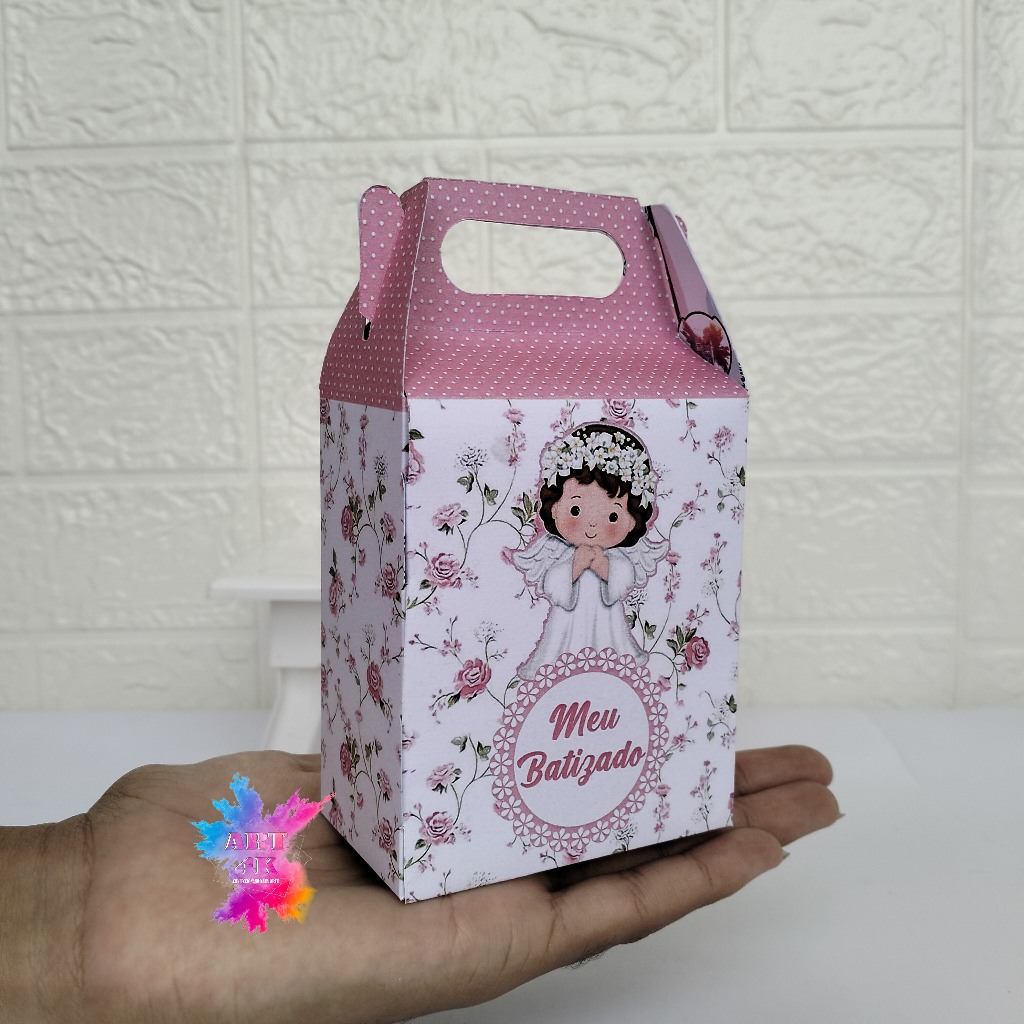 KIT 10 caixinhas Batizado anjinha rosa - SEM PERSONALIZAÇÃO - ARTE NÃO EDITAVEL
