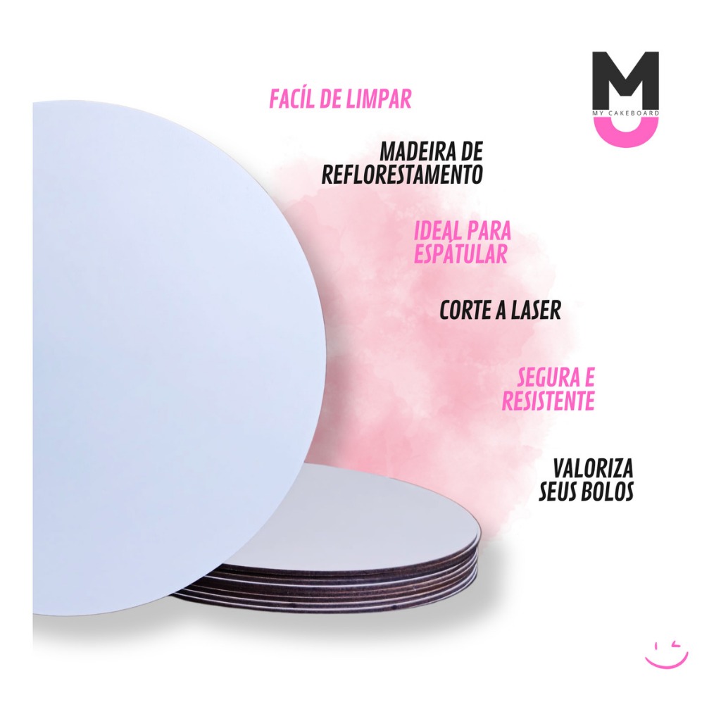 Kit 10 Cake Board 26cm Tabuleiro Bolo Em Mdf 3mm Redondo
