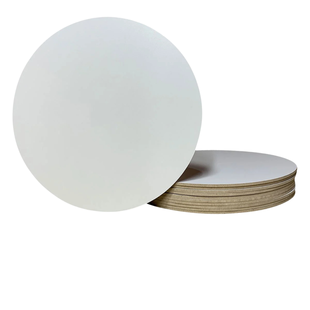 Kit 10 Cake Board 32cm em MDF 3mm Redondo de Bolo Tabuleiro Confeitaria + Chaveiros Confeitaria