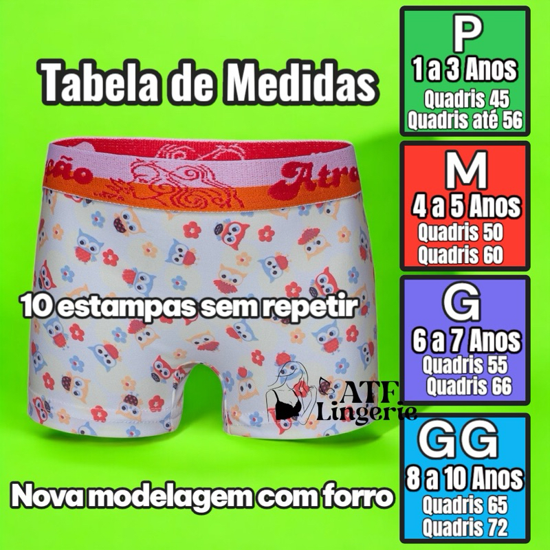 kit 10 calcinha boxer infantil menina shortinho box de microfibra macia com cós grosso segunda pele tem frete grátis?