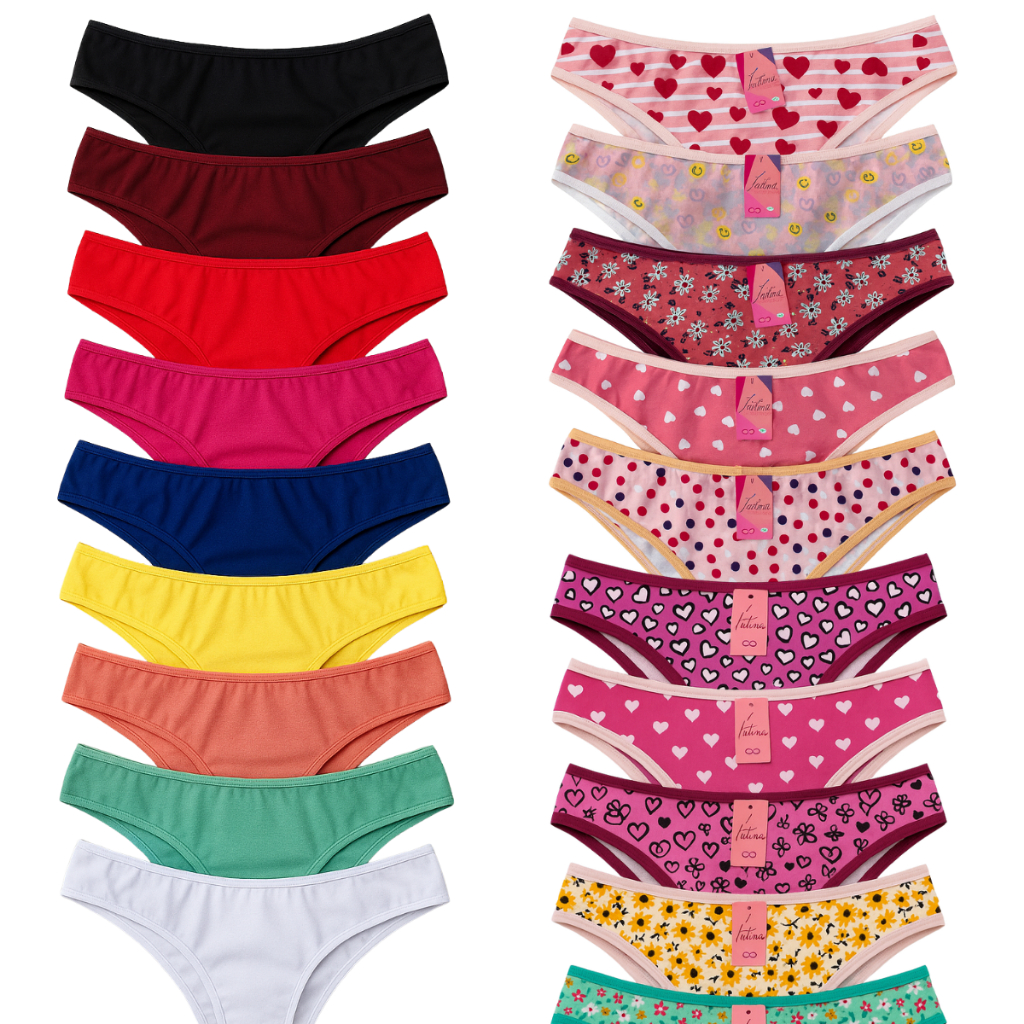 Kit 10 Calcinha Feminina Adulto Viés Conforto 100% Algodão Calcinhas Feminino Roupa Intima