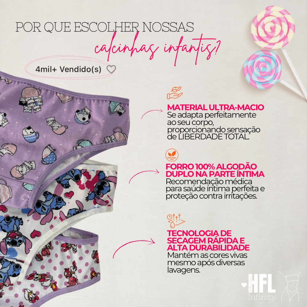 Kit 10 Calcinha Infantil 100% Algodão Dia a Dia Conforto Mocinha Menina Criança Antialergica