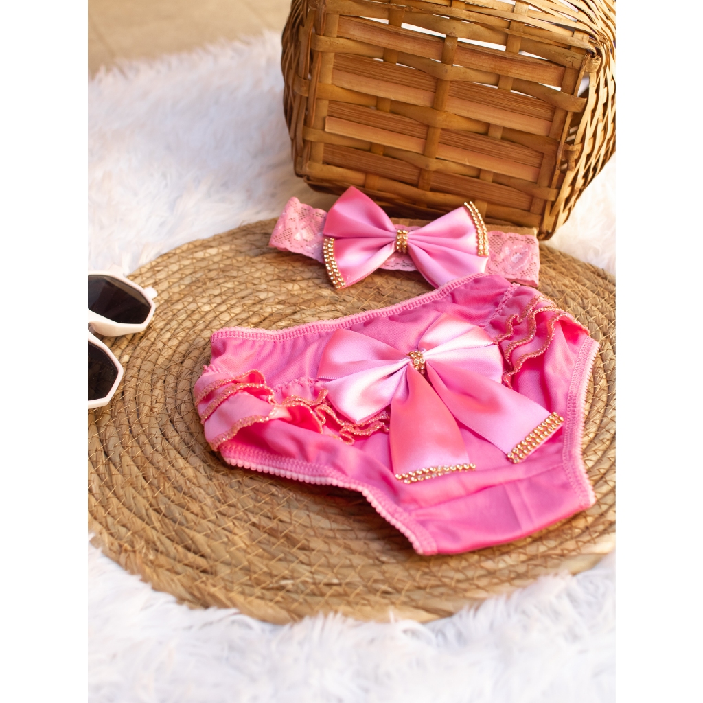 Kit 10 Calcinhas Bunda Rica Com 10 Tiara Luxo De Renda Bebê 0-6 meses