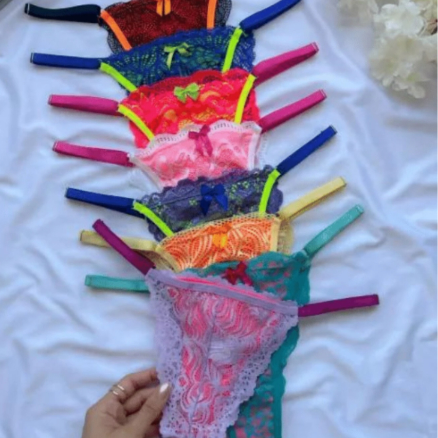 | Kit 10 Calcinhas Em Renda Neon Bicolor Sensual Com Regulagem Tangas... este produto | R$ 49,95 | 50% | 4.7/5 | 8 |