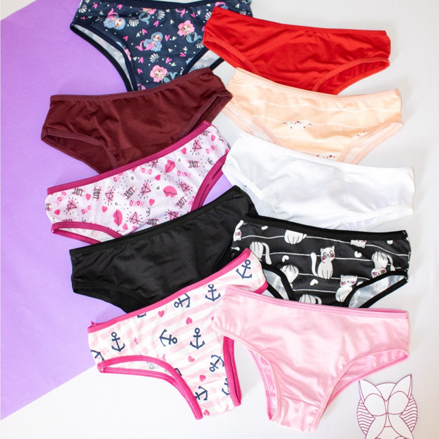 | Kit 10 Calcinhas infantil Menina Conforto Estampadas Dia a Dia este produto | R$ 32,90 | 41% | 4.8/5 | 7 |