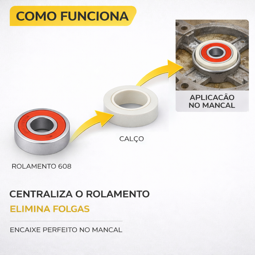 KIT COM 10 Calços Suporte para Rolamento 608 IMPORTANTE: A CAPACIDADE DA ADATAPÇÃO PARA VENTILADORES ARNO É LIMITADA, CONFIRA SE O SEU VENTILADOR POSSUI MANCAL COM ALOJAMENTO DE 29MM ANTES DE REALIZAR A COMPRA. PRINCIPAIS MARCAS DE VENTILADORES COMPATÍVEIS: Mondial Britânia Philco Faet Ventisol Mallory Cadence IDEAL PARA: Substituição e adaptação de rolamentos 608 em mancais de ventiladores, motores e projetos que utilizem esta medida. COMPATIBILIDADE: Projetado especificamente para uso com Rolamento 608 (Dimensões padrão 8x22x7mm). Diâmetro Externo: 29 mm Material: Poliacetal de Alta Resistência (POM) Função: Ajuda a fixar e centralizar o rolamento no mancal, substituindo buchas desgastadas e permitindo a adaptação para rolamentos. ATENÇÃO: Este anúncio se refere apenas aos CALÇOS, NÃO ACOMPANHA ROLAMENTOS 608. Verifique as medidas do seu equipamento antes da compra. Vantagens ao Utilizar o Calço 29mm: * Proporciona um encaixe firme e correto do rolamento no local da bucha original. * Ajuda a reduzir vibrações e desalinhamento, aumentando a vida útil do rolamento e do motor. * Solução econômica e durável para a conversão de buchas para rolamentos. GARANTA JÁ !