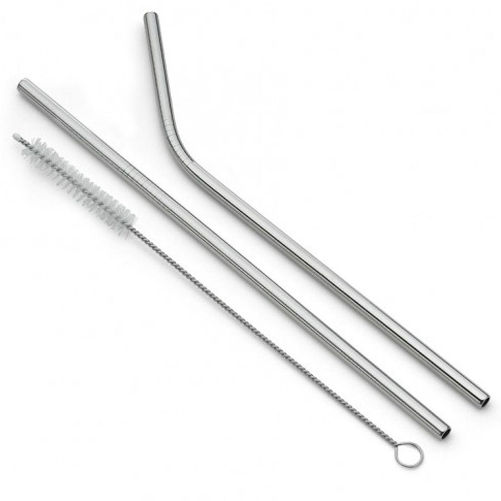 Kit 10 Canudos + 3 Escovinhas para limpeza Aço Inox Lavavel Reutilizavel 5 retos e 5 curvados 21 cm