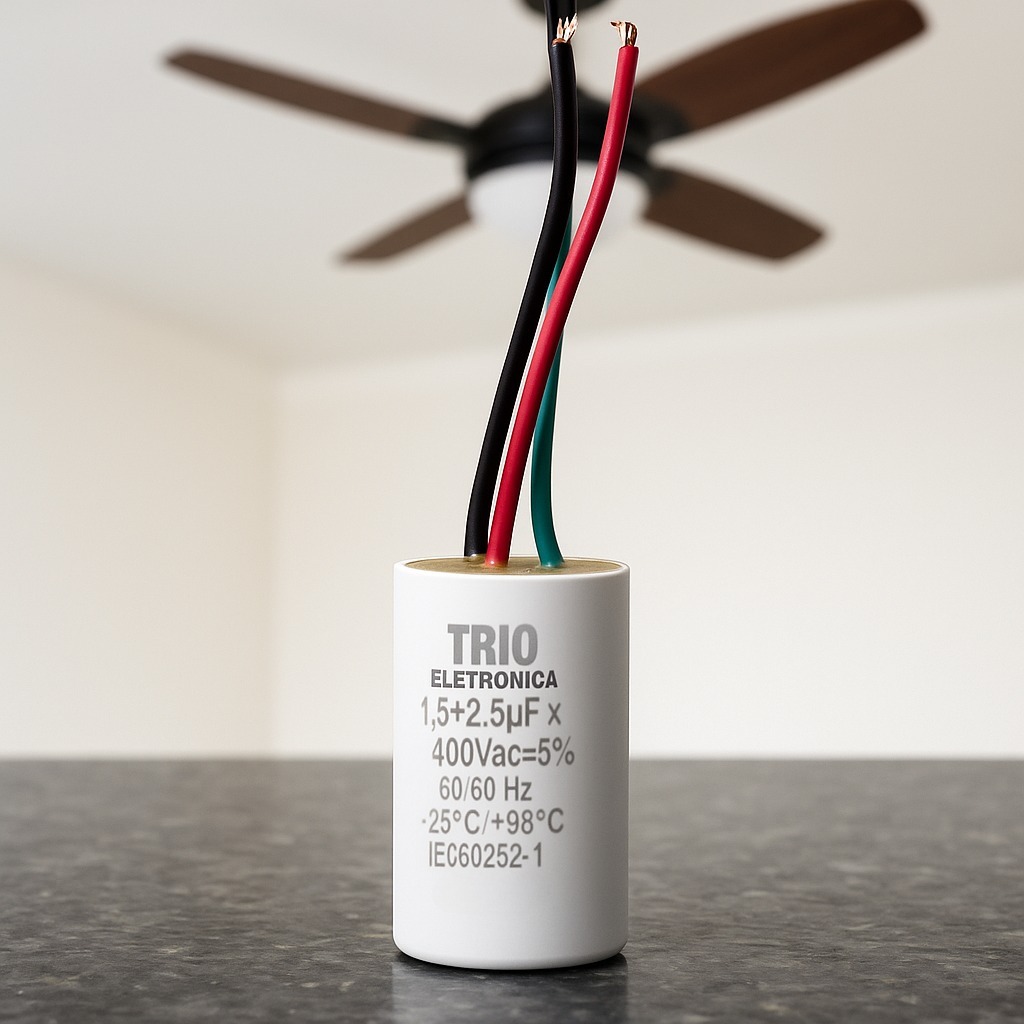 Capacitor para ventilador de teto 1,5+2,5 x 400 3 fios 220V Serve para qualquer marca de ventilador 220V (universal) (KIT COM 10PC)