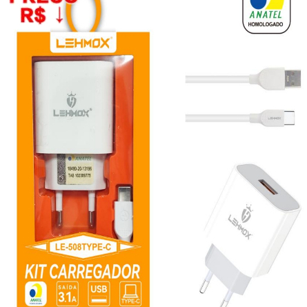 kit 10 Carregador de Celular Super Charging 3.1A Cabo V8 Lehmox - LE-512/508