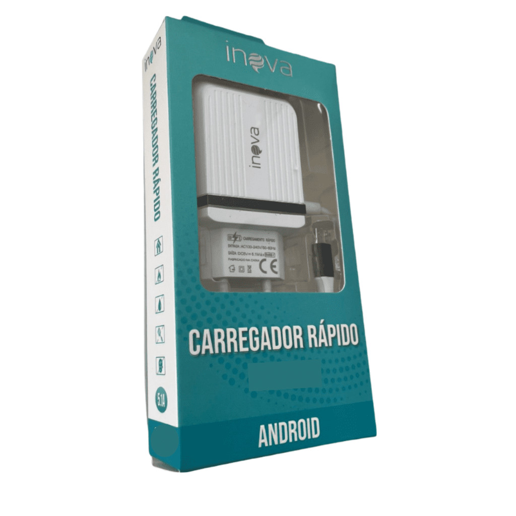 KIT COM 10 Carregadores Rápido 4.8A Micro USB V8 Marca: INOVA Alta eficiência segura e confiável Cores variadas Com 2 portas USB