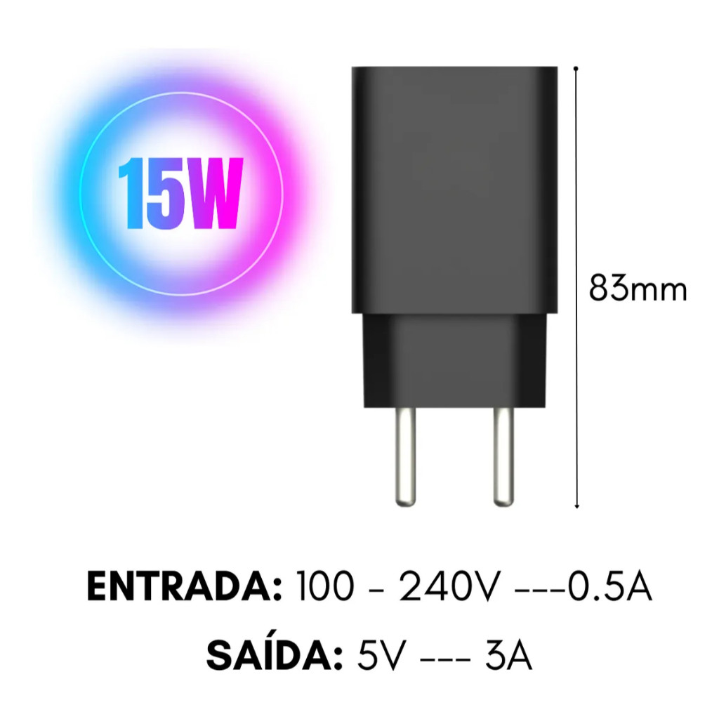 não aconpanha cabo e apenas a fonte de carregamento de 5v 3A de 15w Tenha muito mais velocidade, segurança e praticidade no seu dia a dia com o Carregador de Carga Rápida 3A Bivolt. Desenvolvido para quem não pode perder tempo, ele entrega potência real de 3A, garantindo recarga até 3x mais rápida que carregadores comuns. Compatível com praticamente todos os smartphones, tablets e dispositivos USB, é a escolha ideal para quem busca desempenho, durabilidade e custo-benefício. Por que escolher este modelo? Carregamento Turbo 3A Recarregue seu celular em muito menos tempo, ideal para rotinas corridas. Bivolt Automático (110V/220V) Use em qualquer lugar, sem preocupações — perfeito para viagens, escritório e casa. Proteção Inteligente Chip de segurança integrado contra superaquecimento, sobrecarga e curto-circuito. Alta Durabilidade Material resistente, conectado firme e sem falhas. Compatibilidade Universal Funciona com Android, iPhone (com cabo compatível), tablets, power banks, fones e muito mais. Indicado para quem quer: Carregar rápido Segurança para o celular Produto confiável e durável Ótimo custo-benefício Um carregador para qualquer tomada ⭐ Garanta agora e receba com total segurança! Disponibilizamos envio imediato, nota fiscal, suporte ao cliente e garantia de qualidade. Seu aparelho merece um carregamento rápido e seguro. Adicione ao carrinho e finalize sua compra agora! Kit com 5 e 10 Unidades modelos compatives caso seu modelo não esteja na lista porgunte ao vendedor iPhone 6 / 6s / 7 / 8 (Plus) iPhone X / XR / XS / XS Max iPhone 11 / 11 Pro / 11 Pro Max iPhone SE (Todas as gerações) iPhone 12 / 12 Mini / 12 Pro / 12 Pro Max iPhone 13 / 13 Mini / 13 Pro / 13 Pro Max iPhone 14 / 14 Plus / 14 Pro / 14 Pro Max iPhone 15 / 15 Plus / 15 Pro / 15 Pro Max iPhone 16 / 16 Plus / 16 Pro / 16 Pro Max Galaxy A01 / A02 / A03 / A04 / A04s / A04e Galaxy A10 / A11 / A12 / A13 / A14 / A15 Galaxy A20 / A21 / A22 / A23 / A24 Galaxy A30 / A31 / A32 / A33 / A34 Galaxy A50 / A51 / A52 / A53 / A54 Galaxy A70 / A71 / A72 / A73 Galaxy M12 / M13 / M14 / M22 / M23 / M31 / M32 / M34 / M51 / M52 / M54 Galaxy S8 / S9 / S10 / S20 / S21 / S22 / S23 / S24 (FE / Ultra) Moto G6 / G7 / G8 / G9 (Play / Power / Plus) Moto G10 / G20 / G22 / G23 / G24 Moto G30 / G31 / G32 / G34 Moto G40 / G42 / G50 / G52 / G53 / G54 Moto G60 / G62 / G71 / G73 / G82 / G84 Moto E7 / E13 / E20 / E22 / E32 / E40 Moto One Fusion / Action / Vision / Hyper Motorola Edge 20 / 30 / 40 / 50 (Lite / Fusion / Pro) Redmi 9 / 9A / 9C / 9T / 10 / 12 / 12C / 13C Redmi Note 7 / 8 / 9 / 10 / 11 / 12 / 13 (S / Pro) Poco C40 / C65 / M3 / M4 / M5 / M6 / X3 / X4 / X5 / X6 Mi 8 / 9 / 10 / 11 / 12 (Lite) LG K41s / K42 / K51s / K52 / K61 / K62 Realme C11 / C21 / C30 / C33 / C35 / C53 / C55 Zenfone 6 / 7 / 8 / 9 / 10 Caixas de Som Bluetooth (JBL e Similares) Fones de Ouvido Bluetooth e Power Banks Controles de PS5, Xbox e Nintendo Switch