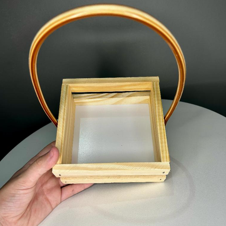 Kit 10 Cesta Madeira Quadrada 14cm com Alça Presente Natal Cosméticos Dia dos Namorados