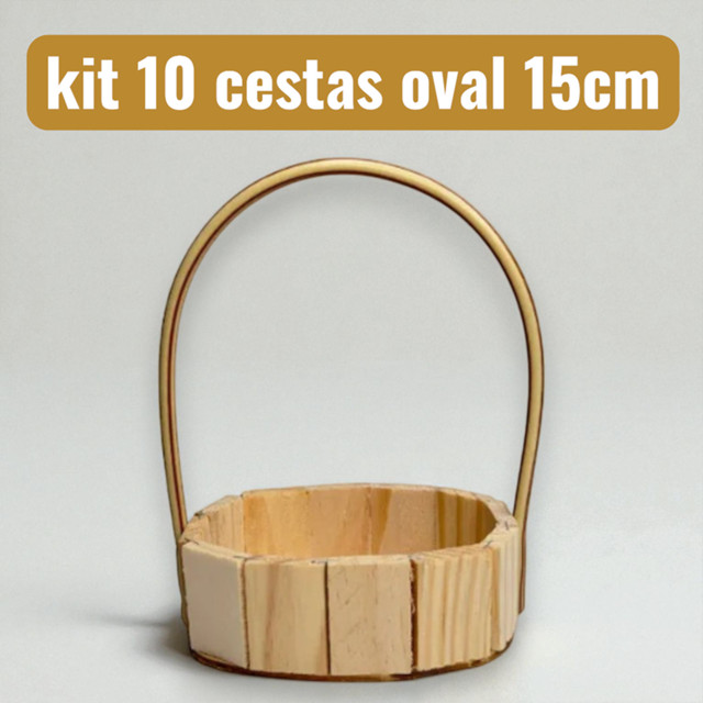 | Kit 10 Cestas Oval de Madeira Pinus 15x11cm com Alça – Cestas para ... este produto | R$ 65,00 | — | 5.0/5 | 19 |