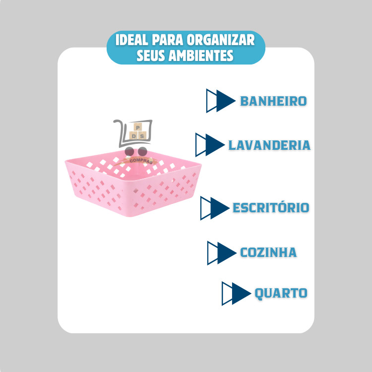 Kit 10 Cesto Organizador Multiuso Premium Rosa 19x13,5x6,5cm Armario Gaveta Geladeira Banheiro Cozinha Lavandeira