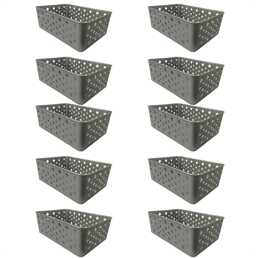 Kit 10 Cestos Multiuso Organizador Médio Decorativo Empilhavel Ideal p/ Armários, Lavanderias, Gavetas, Banheiro etc