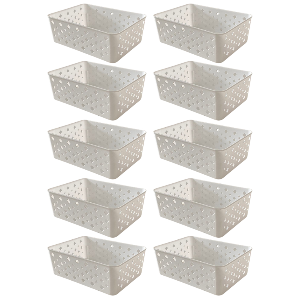 Kit 10 Cestos Organizadores Colorido Multiuso Médio Empilhável Gaveta Armário Lavanderia 19x14x6,5
